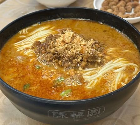 招牌擔擔麵,麻辣鮮香,濃郁的芝麻醬與辣椒油完美融合,每一口都是舌尖上的享受。